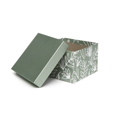 Small Square Gift Box White Leaf on Green with Silver Mirror - Spritz. X 89 inch M 78 dia. Buy 25 to 49.
